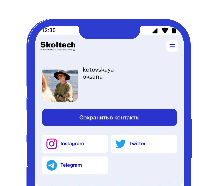 Чтобы начать пользоваться, нужно заполнить контакты в веб-приложении. Это как создать QR-код со ссылкой, только функциональней.